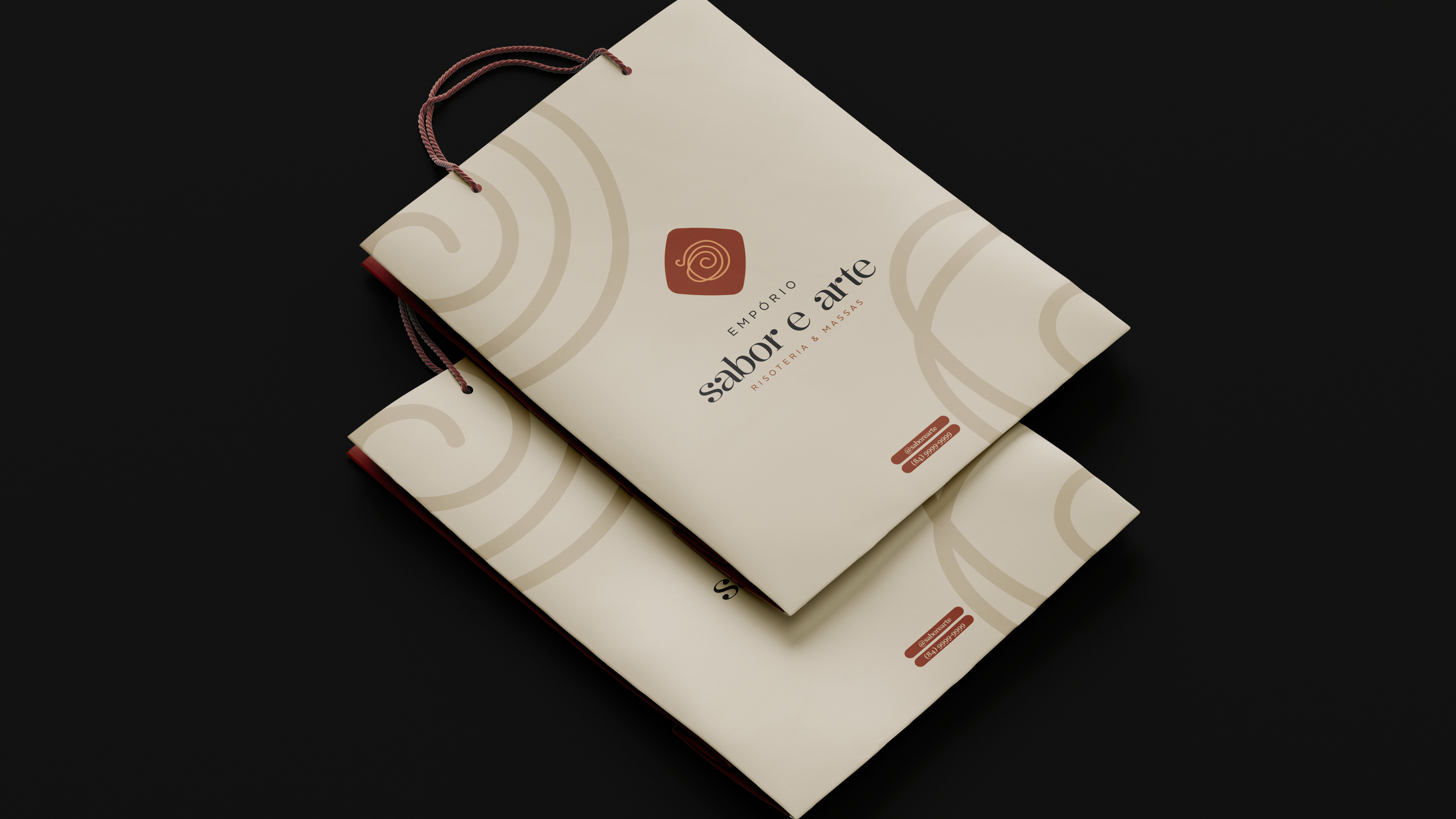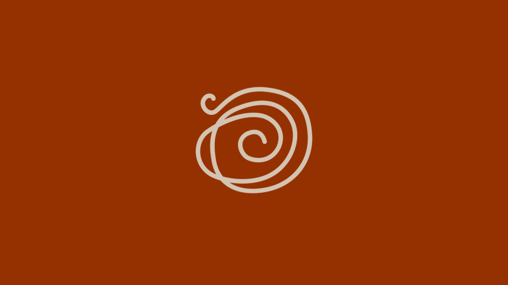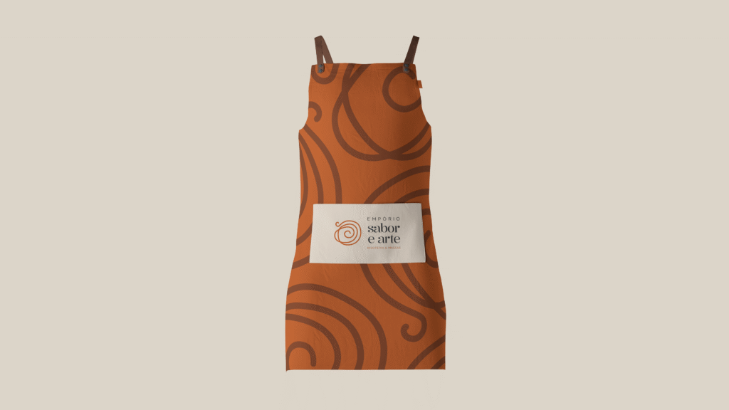 O traço circular no símbolo representa o movimento envolvente do preparo, a mistura, o tempo e o cuidado presentes em cada receita, como uma composição que se revela aos poucos, camada por camada.